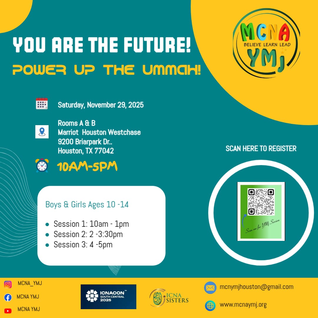 YMj ( Ages 10-14)One-Day Special Program: Don’t miss the Young Muslims Jr program on Saturday Nov 29th,from 10:00 AM to 5:00 PM! This special event is packed with: